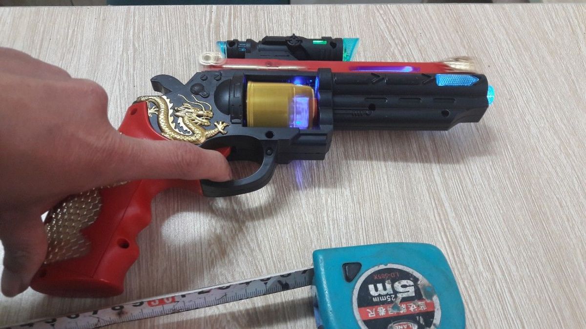 Súng chạy bằng pin con thỏ, có nhạc, có đèn, ổ đạn và nòng rung rung the tiếng nhạc