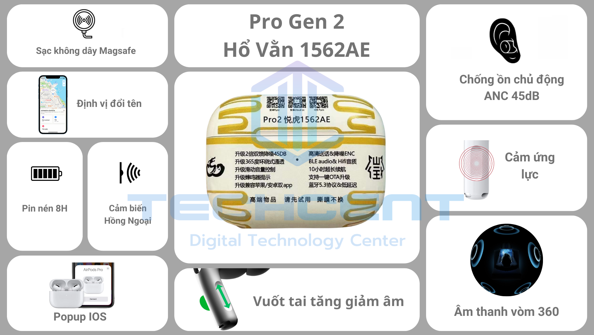 • Tích hợp chuẩn chống ồn ANC ( >45dB ) & xuyên âm HD cực xịn.
