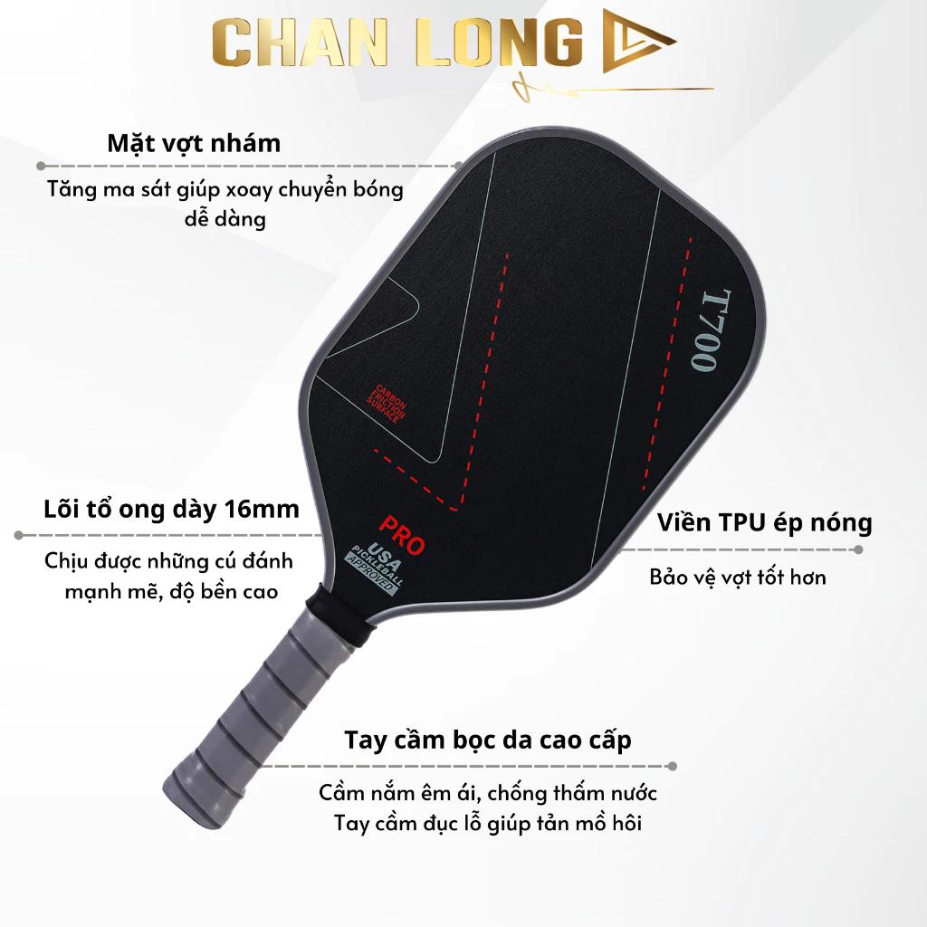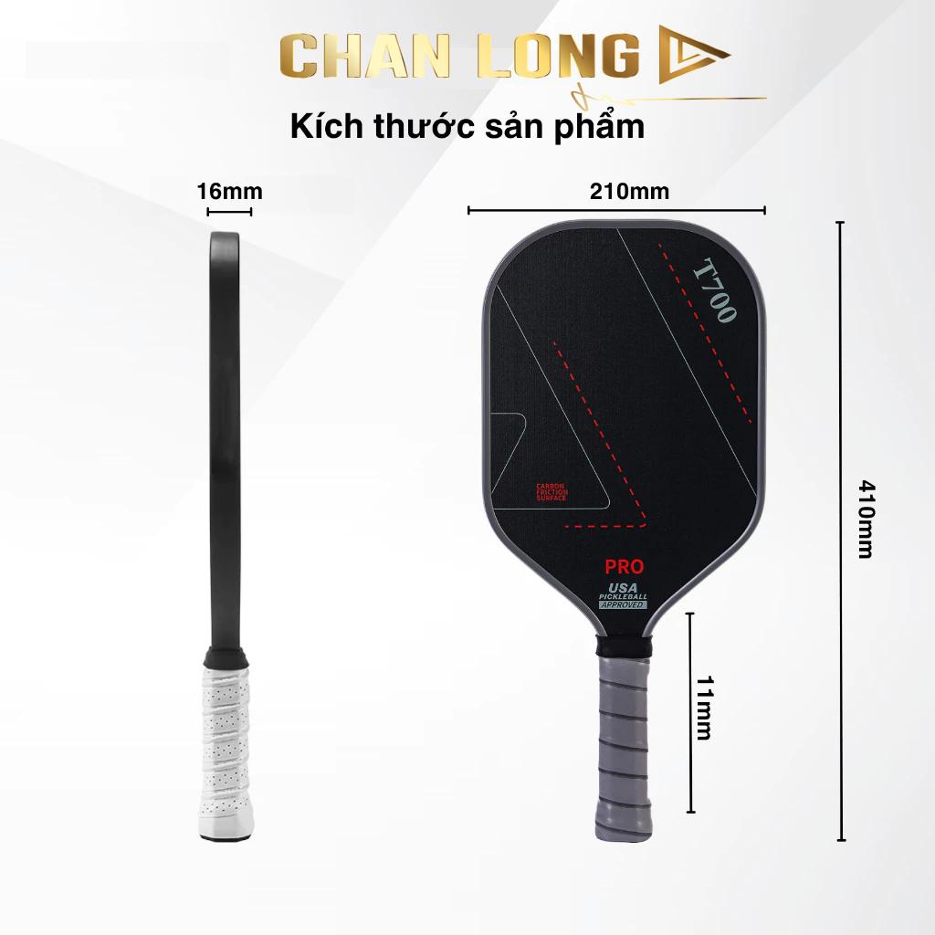 Vợt Pickleball T700 Pro Full Carbon 16mm Mặt Nhám Siêu Nhẹ Cho Thi Đấu, Luyện Tập, Mới Chơi Công Thủ Toàn Diện | CHANLONG