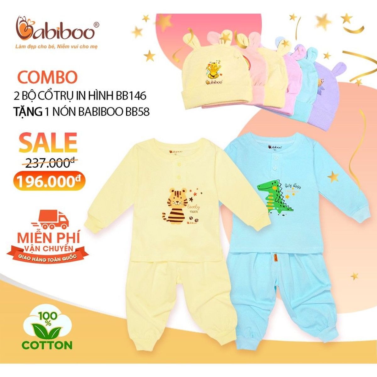 - COMBO Ưu Đãi Bộ Cotton Tay Dài Cổ Trụ In Hình BABIBOO - BB146