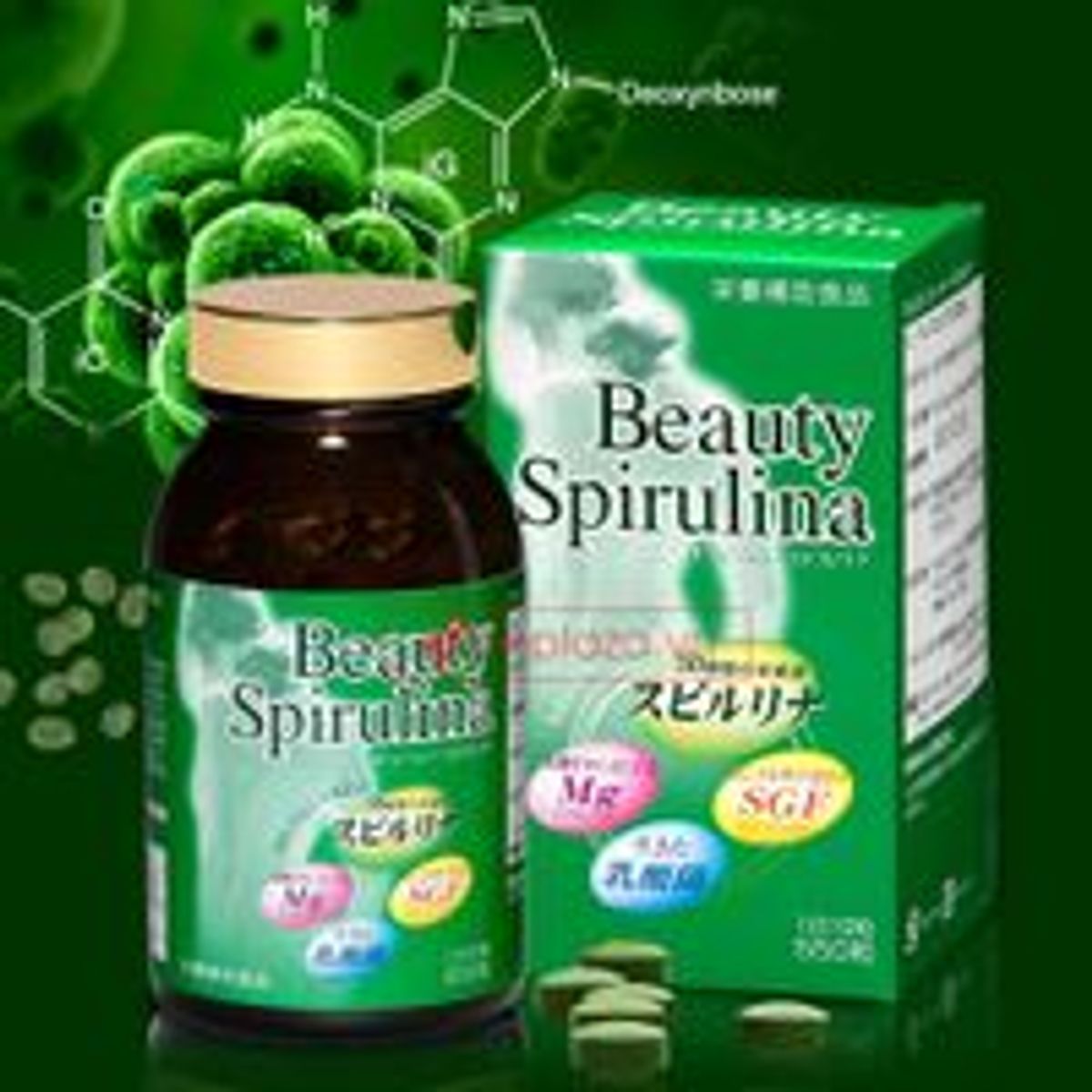 SPIRULINA BEAUTY - Tảo xanh beauty Spirulina, chế biến từ 100% tảo xoắn nguyên chất, chứa thêm billin, được Tokyo Chamber of Commerce and Industry và Japan Food Research Laboratories (JFRL) công nhận về chất lượng là một loại thực phẩm chức năng có nhiều công dụng. Đây chính là bí quyết trẻ đẹp của phụ nữ Nhật Bản.