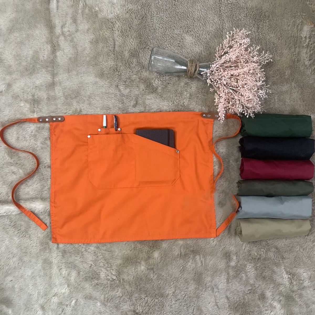 Tạp dề có 1 túi rất tiện dụng để đựng sổ ghi chép, sổ order, điện thoại, ipad…