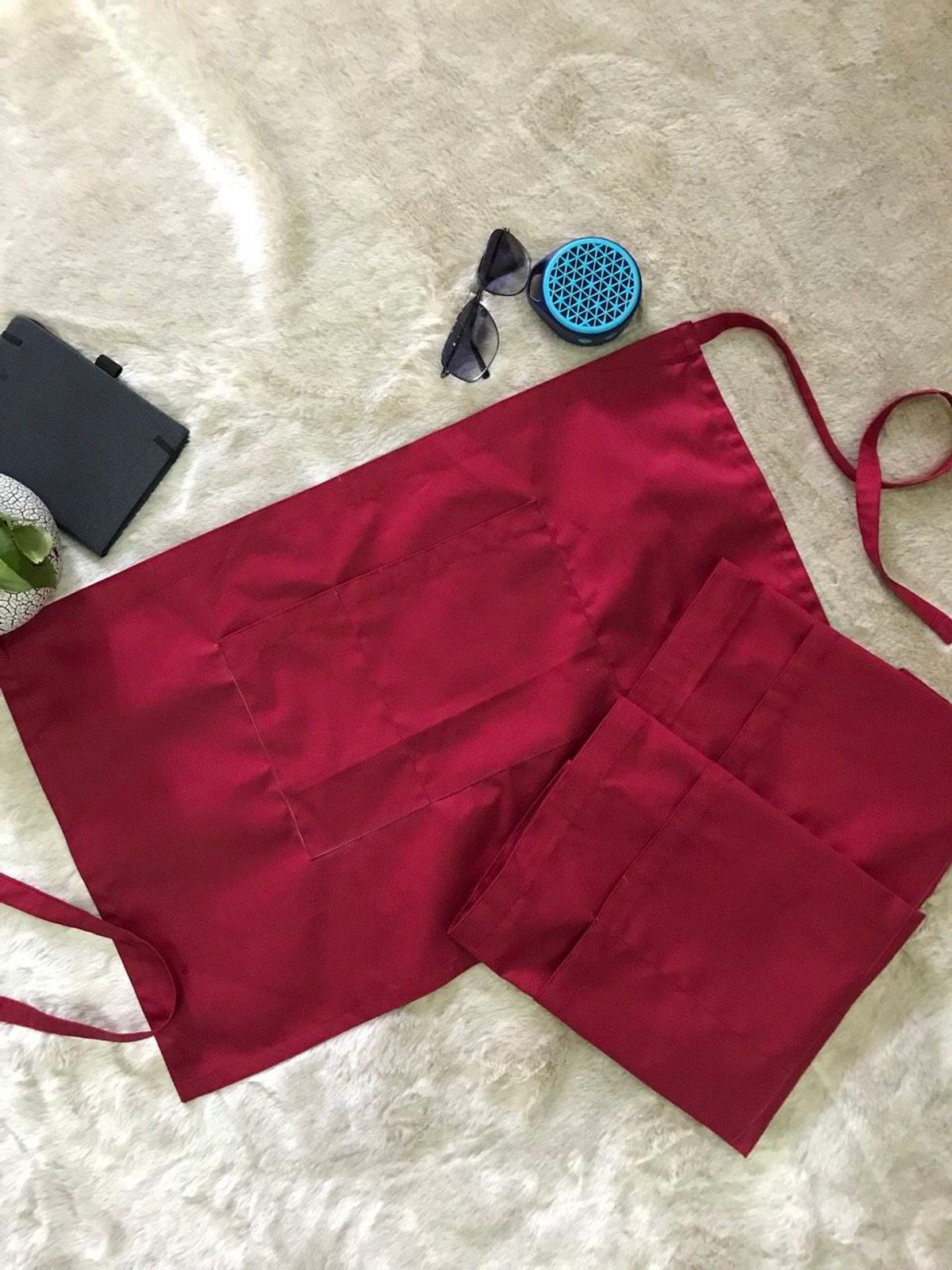 - Quy cách: tạp dề ngắn, có 2 dây dài cột sau lưng, có 2 túi trước đựng sổ order