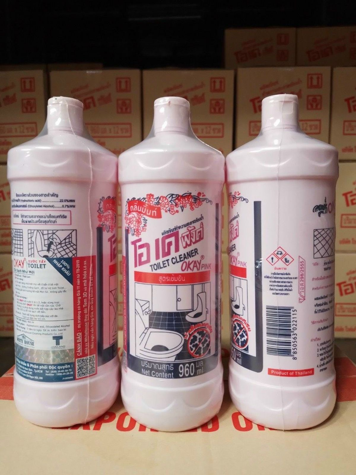 Nước tẩy bồn cầu Okey Tẩy sạch sáng như mới mọi vết ố vàng trên bề mặt gạch men, gốm sứ toilet.... Ko ảnh hưởng đến bề mặt gạch men sứ, ko gây tắc hầm cầu ️ Dùng trực tiếp dung dịch Okey len bề mặt cần rửa. Chờ khoảng 2phut dùng cọ chà rửa về bẩn Đảm bảo cực sạch