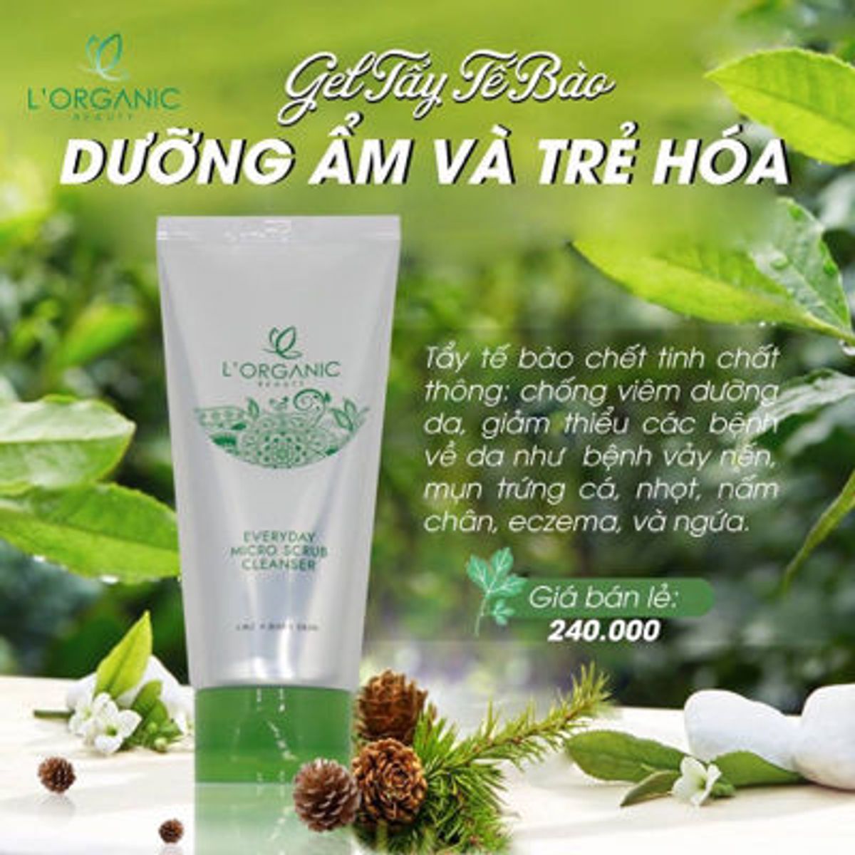 Một trong những sản phẩm đột phá không thể không nhắc đến của L’organic Beauty chính là Tẩy tế bào chết. Chắc chắn bạn không muốn để gương mặt mình trông già nua và xấu xí bởi những lớp biểu bì chết bám dính trên mặt đúng không nào. Tẩy tế bào chết là thứ bạn đang tìm kiếm. Cũng như DD Cream, tẩy tế bào chết của L’organic được chiết xuất chính từ tinh chất thông đỏ để làn da của bạn không bị khô ráp hay khó chịu sau mỗi lần tẩy tế bào chết. Nếu như các sản phẩm tẩy tế bào chết khác được khuyến cáo nên sử dụng 2 lần/ tuần nhưng với Tẩy tế bào chết của L’organic Beauty thì bạn có thể dùng hàng ngày mà không lo kích ứng hay bào mòn da. Bí quyết ở đâu ư? Chính là chiết xuất tự nhiên từ cây thông cùng với công nghệ sản xuất tiên tiến nhất của Top 3 nhà máy lớn nhất Hàn Quốc, Tẩy tế bào chết của L’organic Beauty hoàn toàn dịu nhẹ nhưng vẫn giúp làm sạch những lớp tế bào chết từ những hoạt động hàng ngày. Với thành phần vượt trội Phyton Cide, tẩy tế bào chết có tác dụng làm sạch các tế bào chết không có lợi cho da, tái tạo tế bào, làm sang các vùng da theo màu da tự nhiên. Hơn thế, sử dụng tẩy tế bào chết còn xử lý triệt để các vùng da tổn thương do mụn, viêm lỗ chân lông, kháng khuẩn, dưỡng ẩm và làm mềm mịn da. Đây chính là một bước quan trọng trong cả quá trình chăm sóc da để da có thể hấp thụ tối đa những dưỡng chất từ các loại kem mà bạn sử dụng.