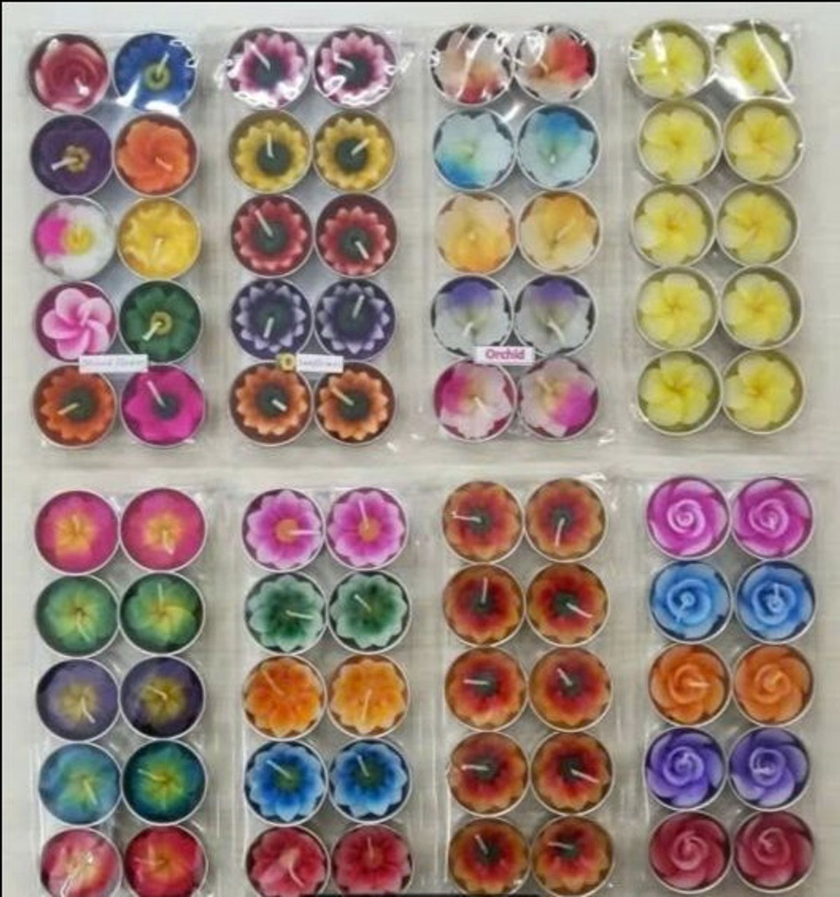 Tealight Hoa có mùi hương hoa, nhiễu mẫu, nhiều màu sắc( giao ngẫu nhiên)1 VỈ= 10 VIÊN= 55.000( Thắp khoảng 1,5 giờ, vỏ Tealight bằng SẮT tránh nước để không gỉ sắt, cao 1,6cm, Đ kính3cm)