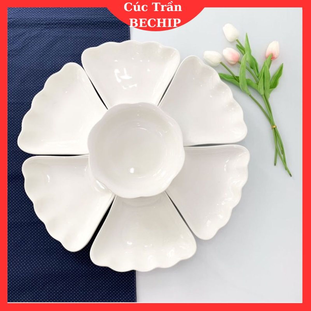 Chất liệu nhựa PP cao cấp, hàng Việt Nam chất lượng cao, bền bỉ, khó sứt mẻ, giống gốm sứ nhưng nhẹ và chống vỡ cực tốt. Màu sắc trắng, sáng làm nổi bật không gian bếp nhà bạn. Kiểu dáng hiện đại với họa tiết cánh hoa tách rời, tạo thành bông hoa 6 cánh đầy sang trọng.
