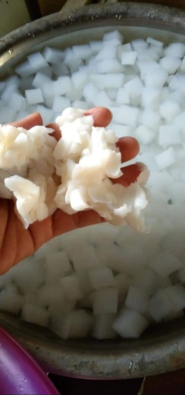 thạch dừa khô khi nấu ra ra thành phẩm khoảng 15kg