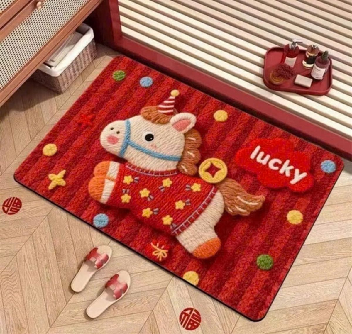 THẢM LÔNG CỪU HÌNH NGỰA 2026 – SIÊU THẤM HÚT & SANG TRỌNG Giá: 26K - Bao 250c giảm ĐÓN VẬN MAY - RƯỚC NGỰA VÀNG 2026 Bạn đang tìm kiếm một làn gió mới cho không gian sống? Mẫu thảm lông cừu chú ngựa Bính Ngọ 2026 chính là lựa chọn hoàn hảo để vừa trang trí, vừa bảo vệ sức khỏe gia đình! ƯU ĐIỂM VƯỢT TRỘI • Chất liệu Polyester cao cấp: Bề mặt giả lông cừu mềm mại như mây, nâng niu bàn chân sau ngày dài mệt mỏi. • Siêu thấm hút: Hút nước thần tốc chỉ trong 3 giây, giữ cho sàn nhà luôn khô ráo, sạch sẽ. • Đế hạt nhựa chống trượt: Bám dính cực tốt, an toàn tuyệt đối cho người già và trẻ nhỏ. • Kháng khuẩn & Bền bỉ: Chất vải cao cấp hạn chế ẩm mốc, không bị rụng lông hay phai màu sau thời gian dài sử dụng. • Vệ sinh dễ dàng: Chỉ cần xả nước hoặc giặt máy là sạch bong, khô cực nhanh. THÔNG TIN SẢN PHẨM • Kích thước: 40 x 60 cm (Nhỏ gọn, vừa vặn mọi góc nhà). • Họa tiết: Chú ngựa 2026 siêu dễ thương, mang ý nghĩa "Mã Đáo Thành Công" . • Ứng dụng: Phù hợp đặt tại phòng tắm, nhà bếp, cửa ra vào, phòng ngủ hay ban công...