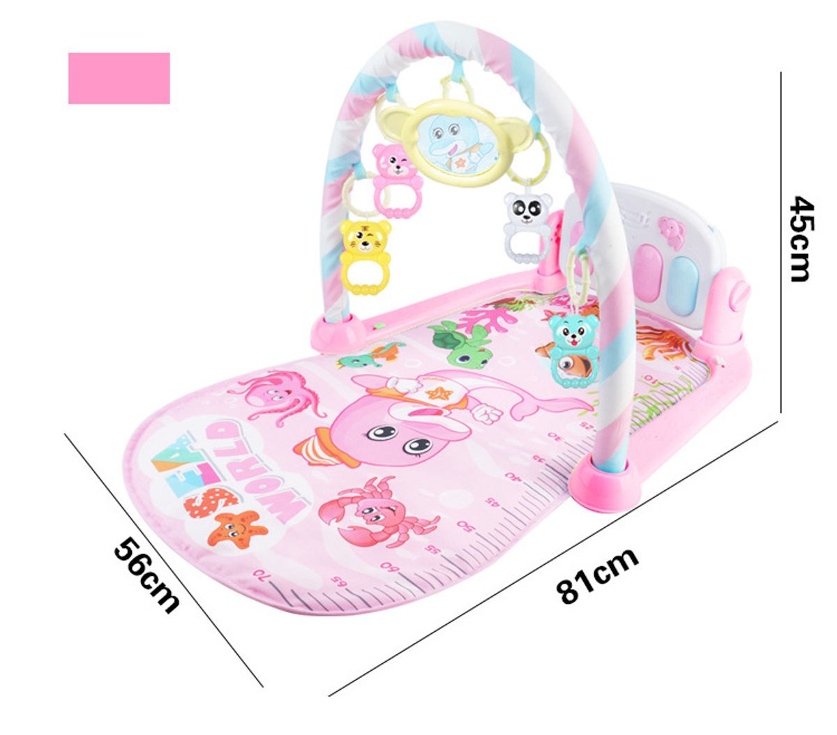 - Thiết kế có thanh đồ chơi phía trên và phía cuối bé nằm có bàn piano, khi bé đạp chân vào sẽ tạo ra những giai điệu khác nhau
