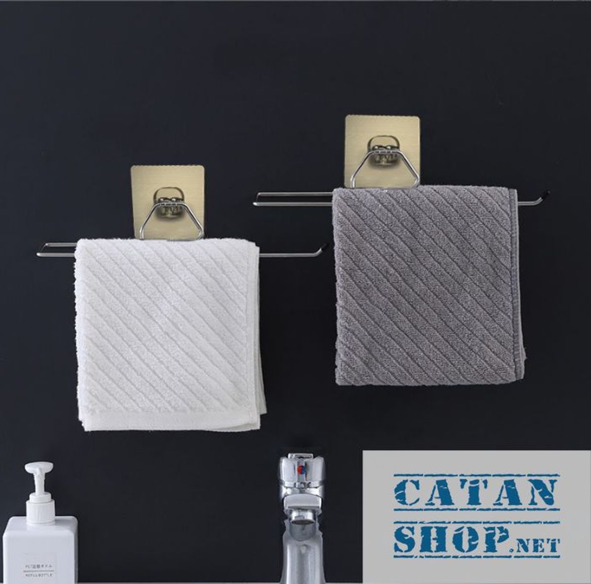 - Dán miếng dán giữ móc, lấy tay miết mạnh để miếng dán dính chặt vào tường, lắp móc lên.