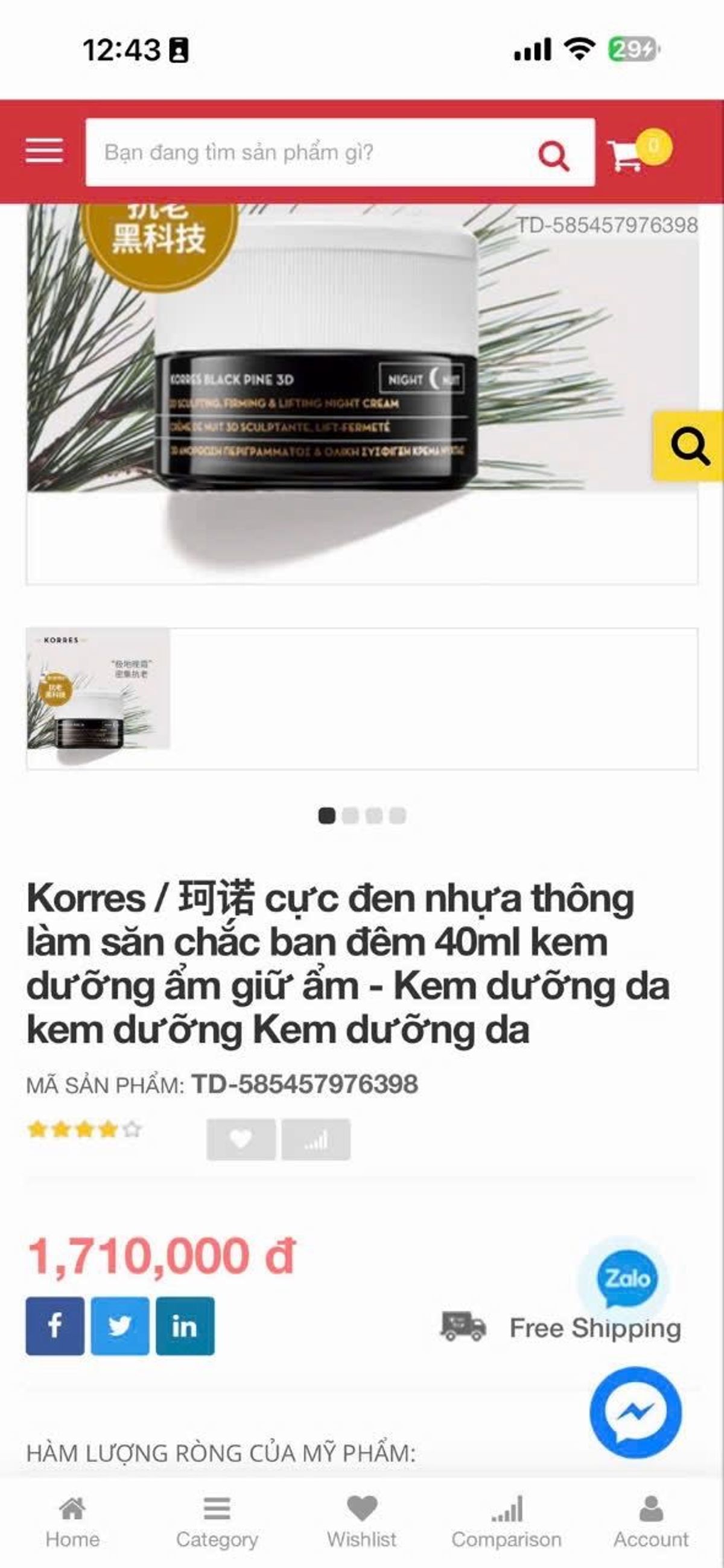 THANH LÝ Kem dưỡng nâng cơ korres Mỹ CHÍNH HÃNG giá sỉ - giá bán buôn