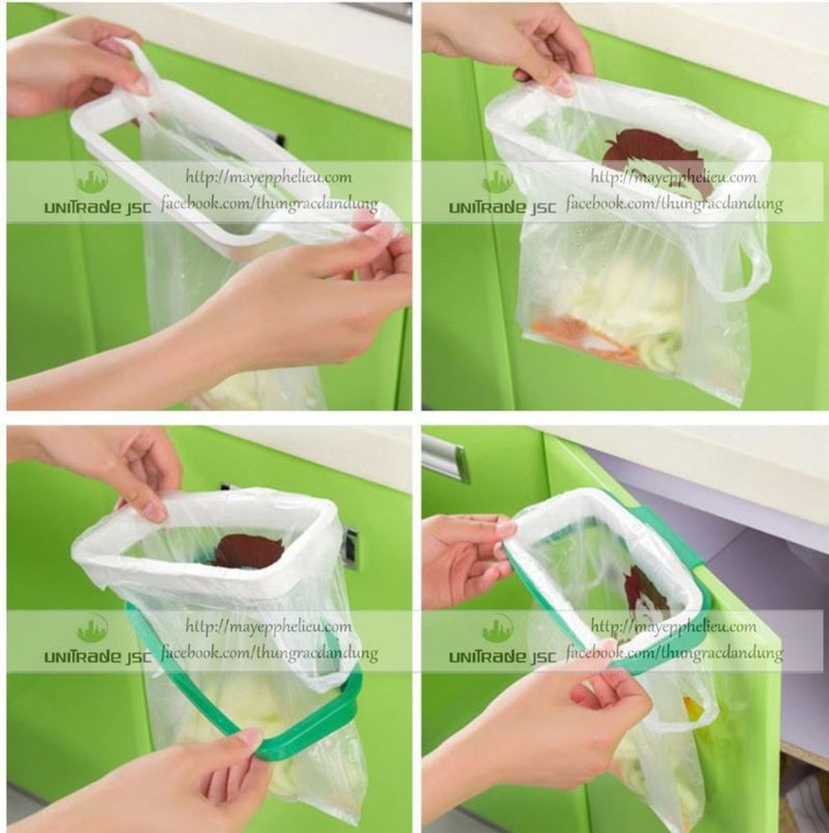 Khung kẹp giữ bị rác, có móc vào cánh cửa tủ giúp cố định khung thu gom rác trong quá trình làm bếp.