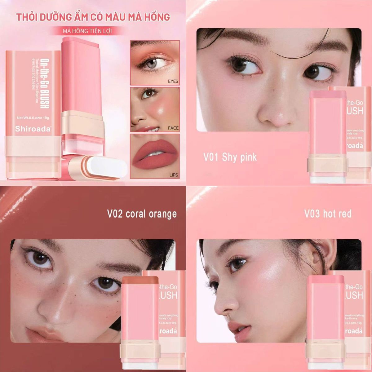 Thỏi Má Hồng Đa Năng Shiroada On The Go Blush 19g – Dưỡng Ẩm, Lên Màu Tự Nhiên Cho Môi, Má, Mắt