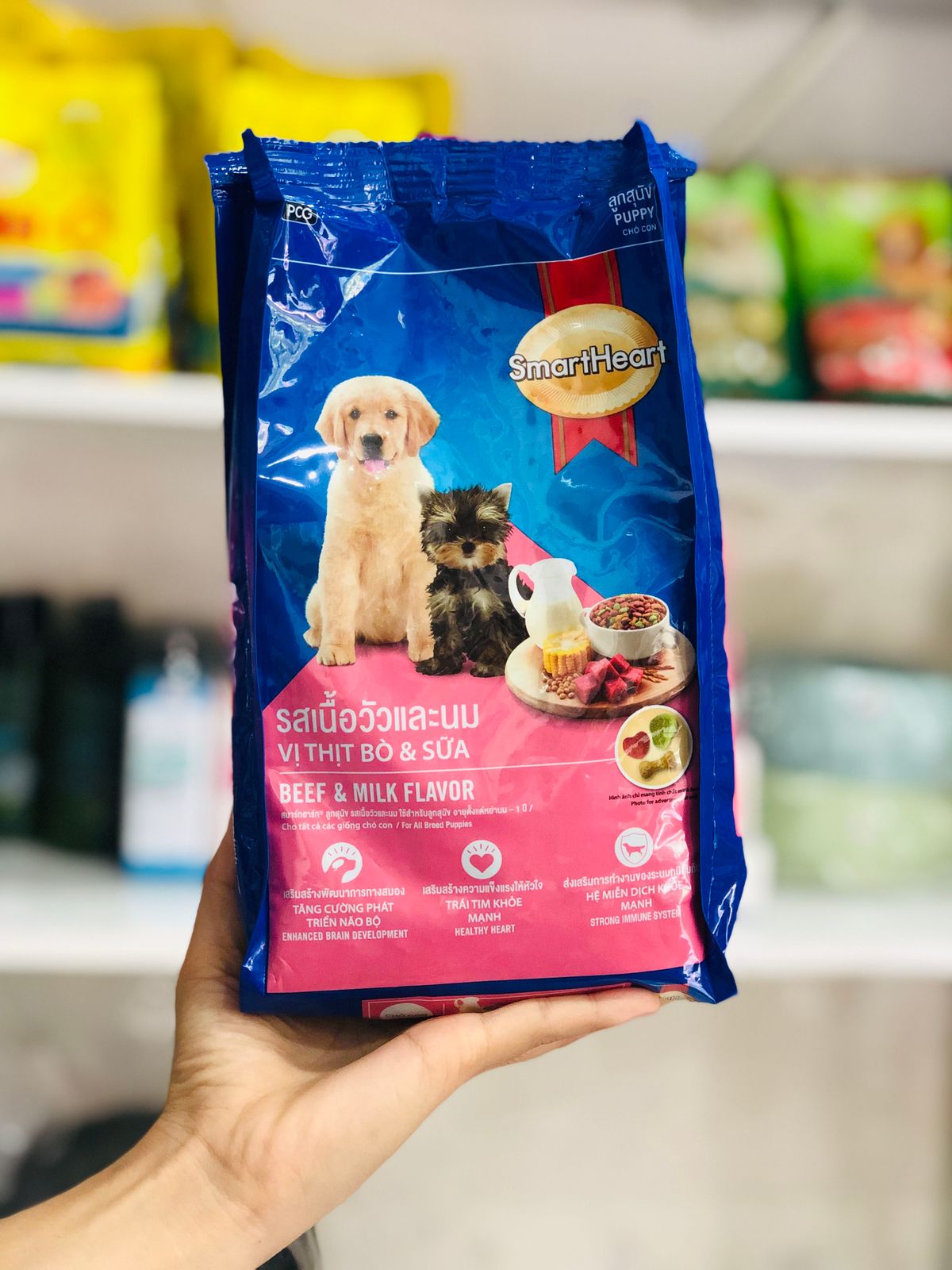 Thức Ăn Khô Cho Chó Con Hương Vị Thịt Bò Và Sữa SmartHeart đáp ứng được nhu cầu dinh dưỡng cho chú chó của bạn bằng cách sử dụng những thành phần có tốt nhất, có bổ sung sữa, dầu cá, giàu DHA và Axit béo Omega-3, Lecithin, giàu Colin, giúp tăng cường sự phát triển trí não và hệ thần kinh, tăng cường sức khỏe tim mạch.