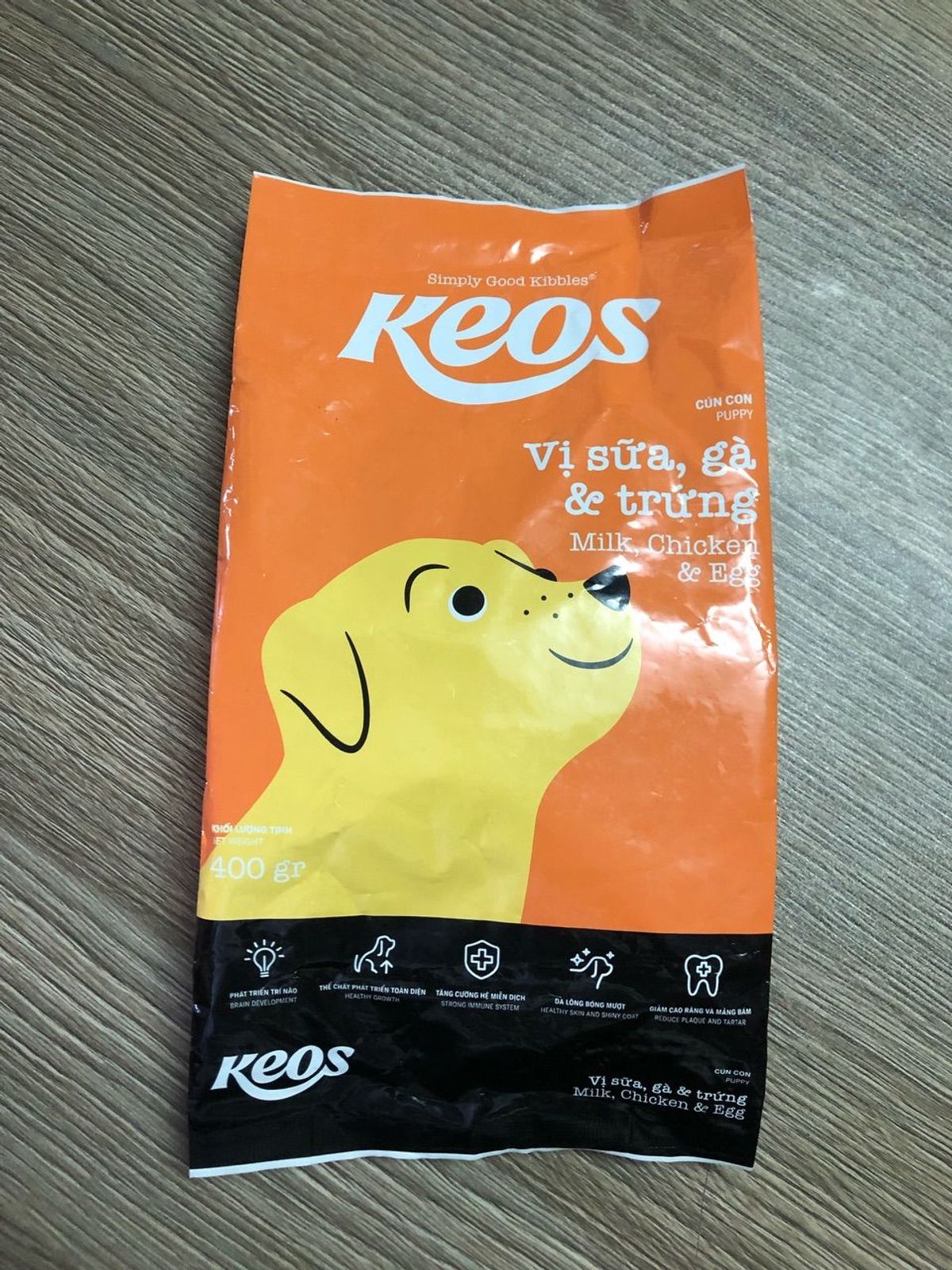 THỨC ĂN CHO CHÓ CON Keos Puppy Dạng hạt Vị Trứng gà400g 50 gói và thùng 1,5kg 9 gói