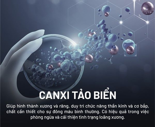 - Calcium tảo biển (chứa 12% Calcium, tương đương 210 mg Calcium), Glucosamine Sulfat, Magie Sulfate