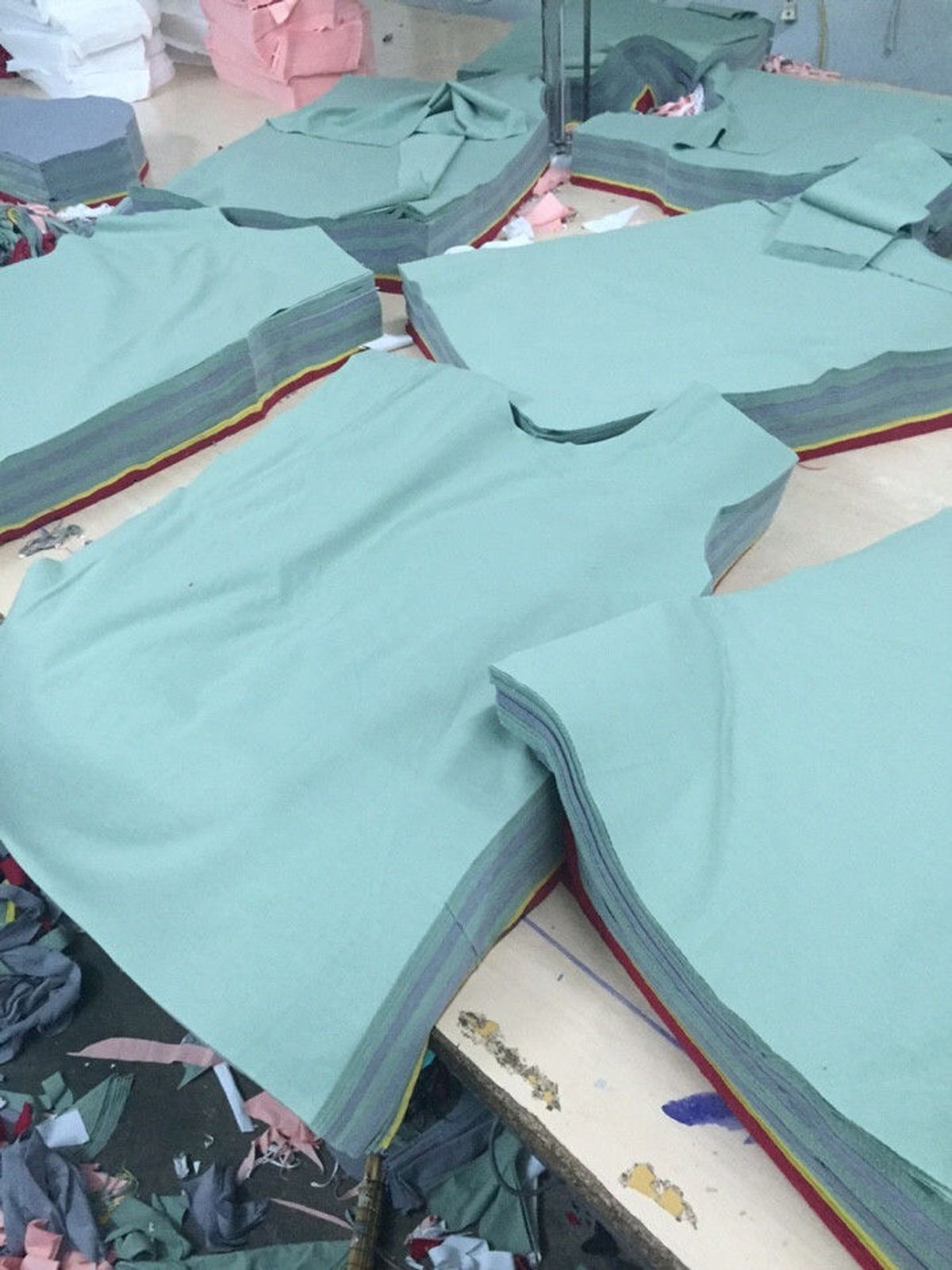 Sản theo dây chuyền khép - từ khâu vải, cắt, in, thêu, may, ủi, đóng gói...