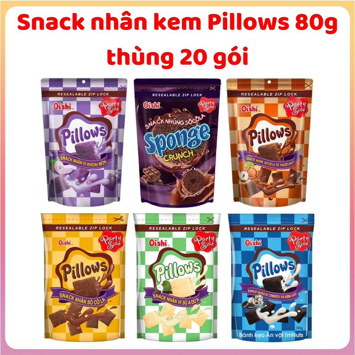 Bánh Snack Pillows Oishi nhân kem đủ vị gói lớn 80g là sản phẩm của Oishi là thương hiệu bánh kẹo nổi tiếng được nhiều người yêu thích tại Việt Nam. Một trong những sản phẩm nổi bật nhất của thương hiệu này là các loại bánh snack Oishi tôm, snack cua Crab Me, snack nhân đậu phộng Pinattsu, snack que nhân kem Akiko,...