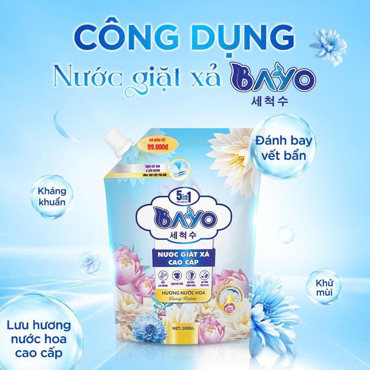 • Vừa giặt sạch vừa xả thơm, không cần dùng thêm nước xả