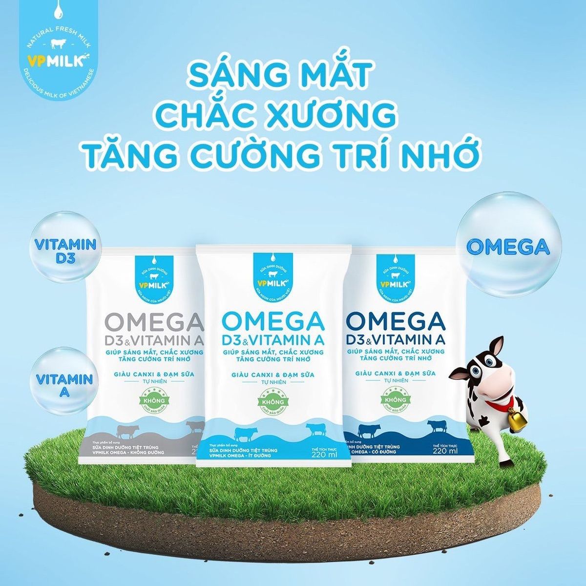 - Sản phẩm Sữa Dinh Dưỡng Tiệt Trùng VPMilk Omega với công thức dưỡng chất hoàn thiện, kết hợp Vitamin A giúp sáng mắt, VItamin D3 hỗ trợ hấp thu canxi và bổ sung Omega giúp tăng cường trí nhớ, hỗ trợ ngăn ngừa giảm trí nhớ.