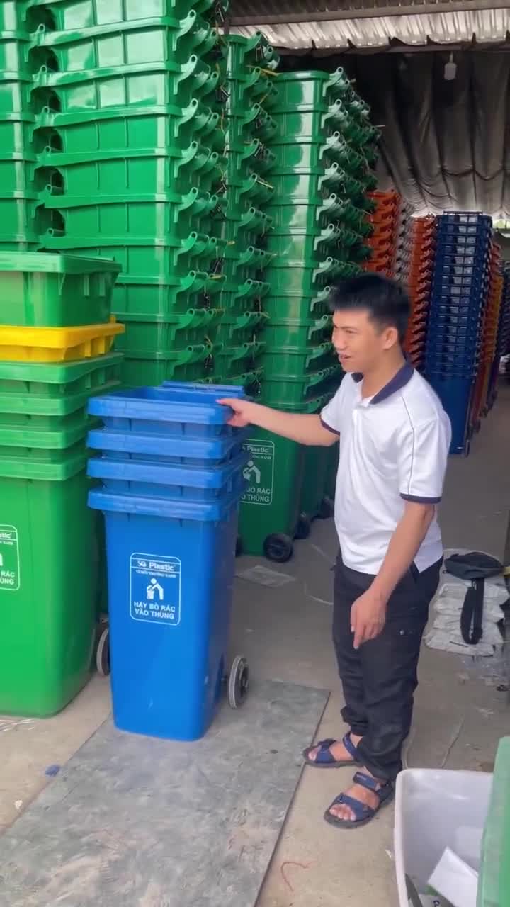 Thiết kế: Gồm nắp kín chống mùi, bánh xe xoay linh hoạt 360 độ, tay cầm chống trượt, đáy gia cố chắc chắn.
