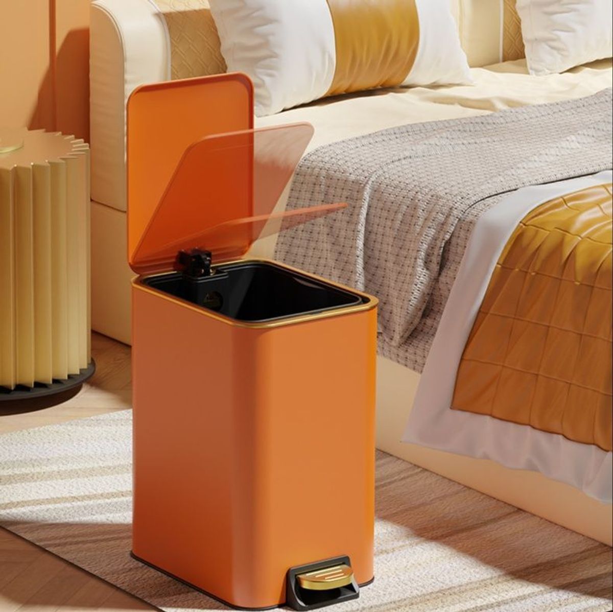 - Nắp có bộ phận giảm chấn, giúp cho khi đạy nắp sẽ được hạ xuống từ từ nhẹ nhàng. Không hạ đột ngột như các thùng rác thông thường