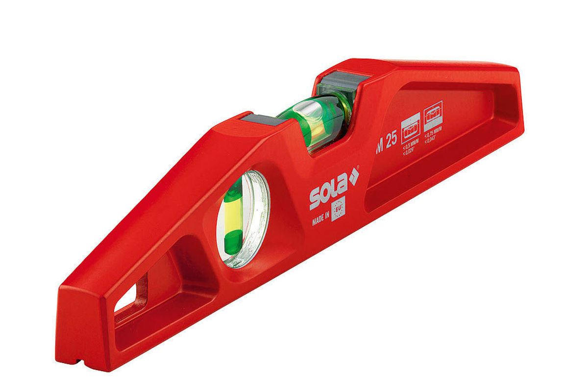 - Thân thước được đúc từ nhôm cưc kỳ cứng và ổn định, với bề mặt đo lường được phay nhẵ, và rãnh V cho thợ dàn giáo và đường ống.