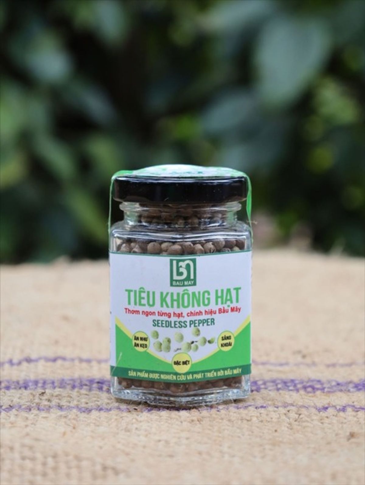 Tiêu không hạt được chế biến từ 100% là tiêu Bầu Mây, được trồng và chăm sóc theo quy trình đạt chuẩn quốc tế GlobalGAP, đặc biệt theo phương pháp hữu cơ gia truyền đầu tiên của Việt Nam và trên thế giới do anh nông dân Lâm Ngọc Nhâm nhà khoa học của nhà nông nghiên cứu và phát triển hơn 30 năm qua,