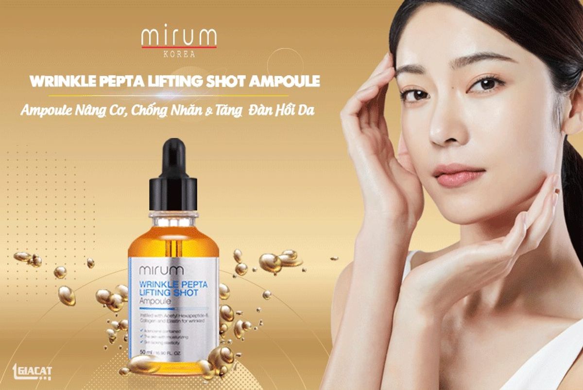 Sau khi rửa mặt sạch với sửa rửa mặt Mirum Super Aqua Deep, nhẹ nhàng lau qua với toner và kết hợp một lượng thích hợp tinh chất MIRUM WRINKLE PEPTA LIFTING SHOT AMPOULE, thoa đều vỗ nhẹ khắp bề mặt da giúp sản phẩm thẩm thấu tốt hơn. Sử dụng sáng và tối.