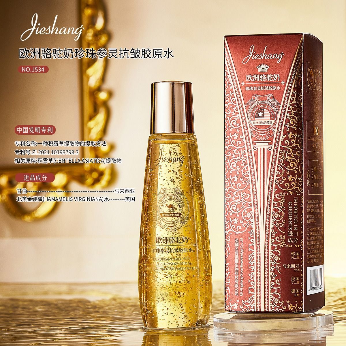 Tinh chất sữa lạc đà JieShang ngọc trai nhân sâm chống nhăn collagen nước dưỡng ẩm làm sáng da 120ml giá sỉ - giá bán buôn