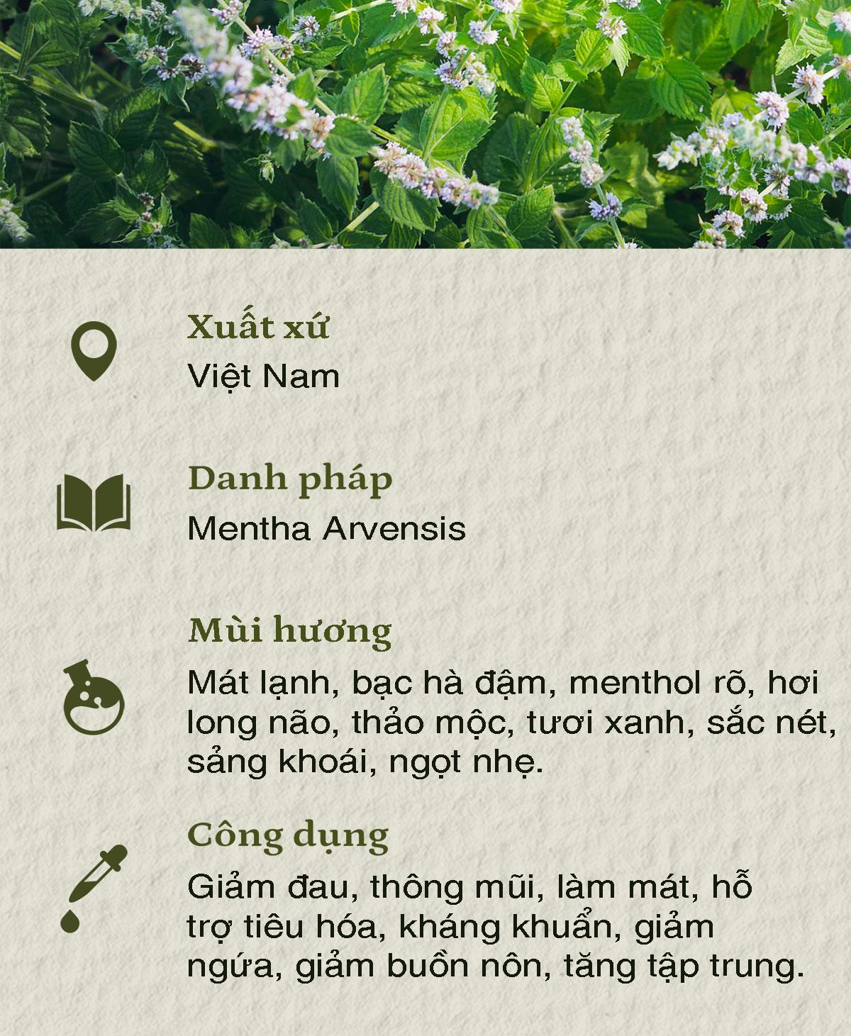 NỐT HƯƠNG: Mạnh, bạċ hà, thảo mộc, ngọt, peppermint
