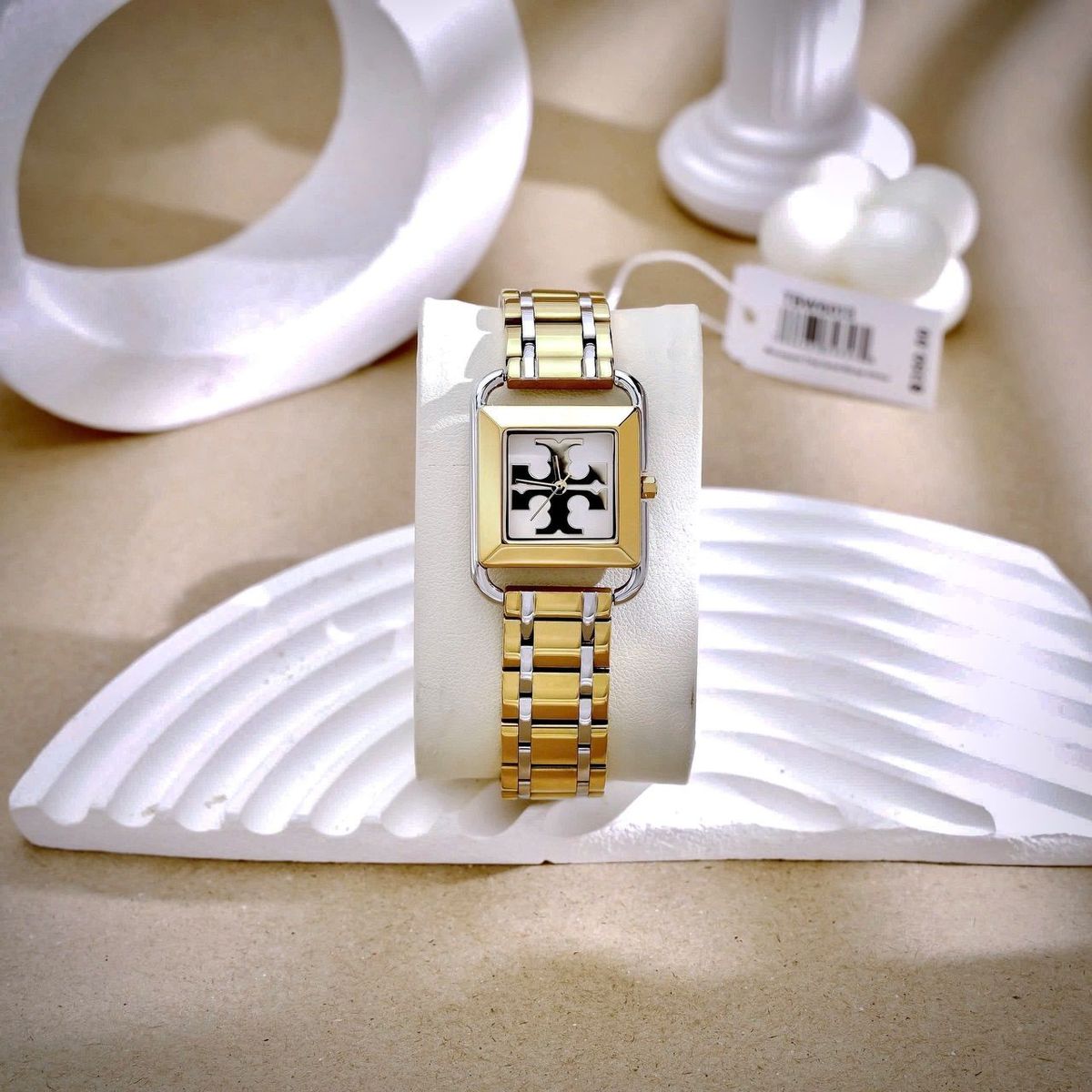 • Đồng hồ Tory Burch Miller Square thiết kế mặt vuông sang trọng, logo nổi ấn tượng, dây thép không gỉ phối vàng – bạc tinh tế, mang lại vẻ đẹp thời thượng và đẳng cấp cho phái nữ.