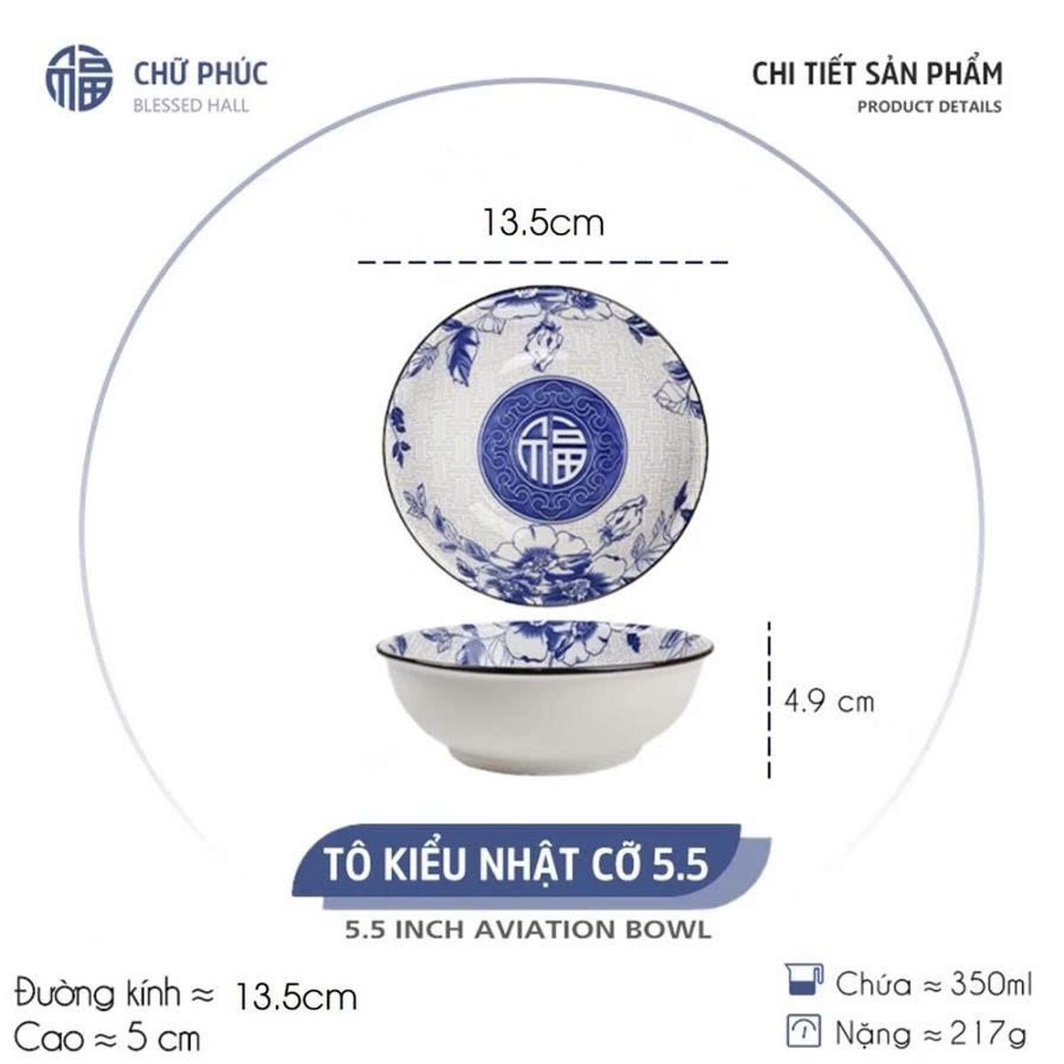 TÔ SỨ KHÔNG HOA XANH CHỮ PHÚC 13cm