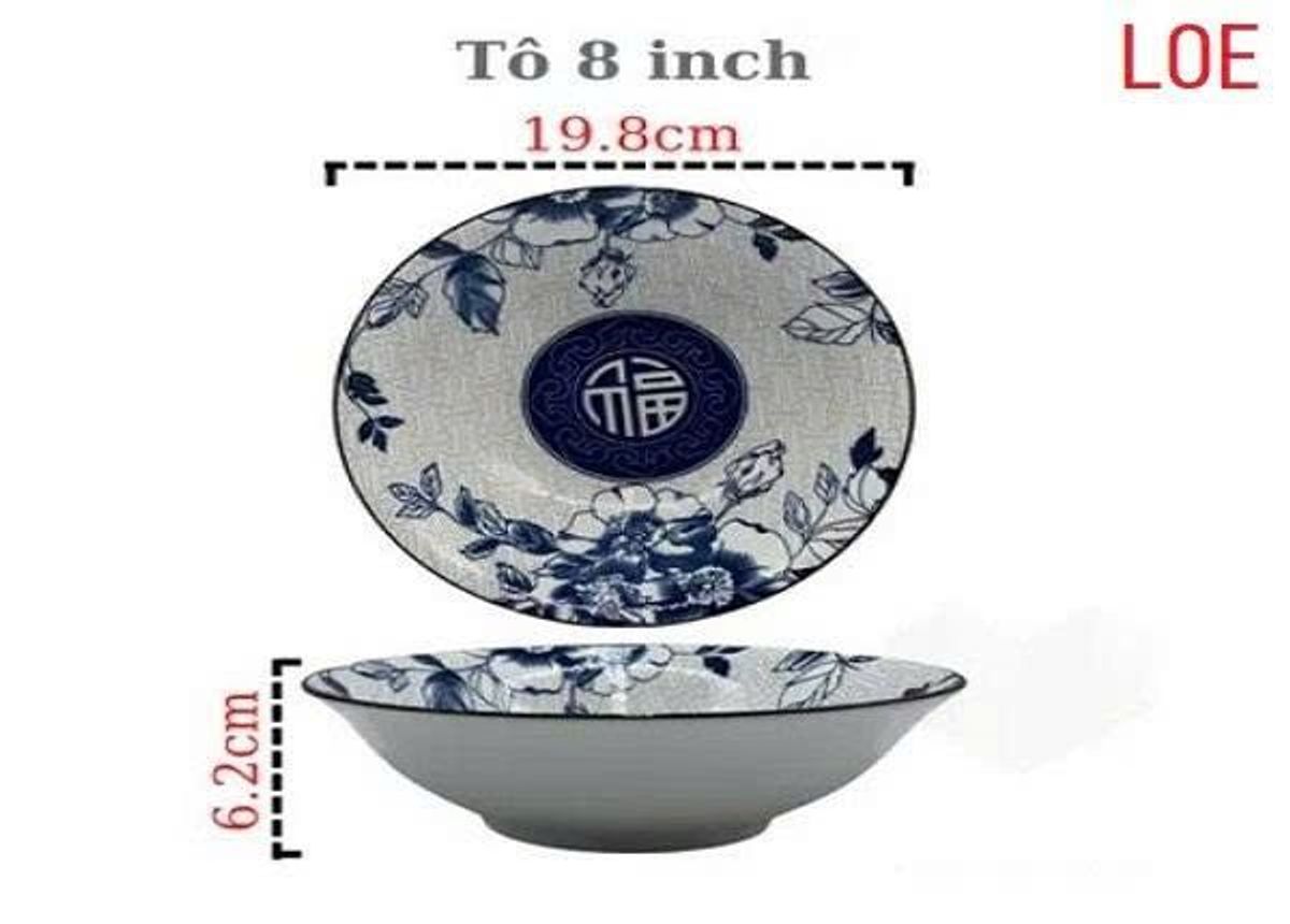 TÔ SỨ LOE HOA XANH CHỮ PHÚC 20cm giá sỉ - giá bán buôn