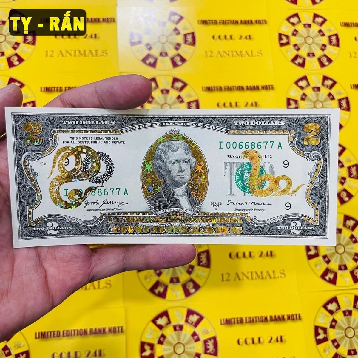 Tờ tiền 2 đô mạ vàng hình con Rắn kèm bao lì xì đỏ may mắn, lì xì Tết. giá sỉ - giá bán buôn