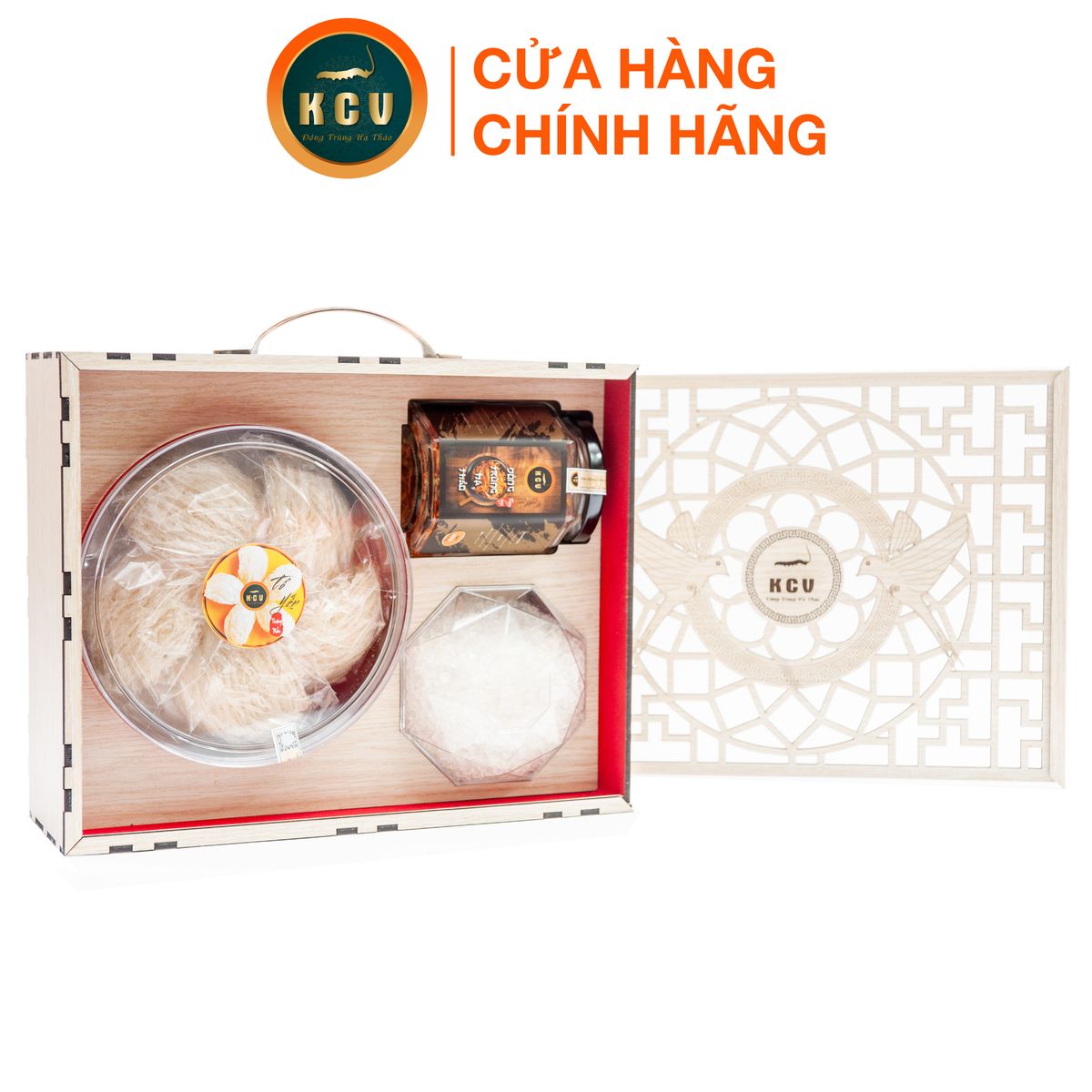Quy cách đóng gói: Hộp gỗ Tổ Yến Tinh Chế 50gr + Hộp đường phèn + Đông Trùng Hạ Thảo khô 10g.