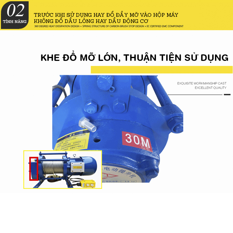 Tải trọng:1 móc 500kg 2 móc 1000kg