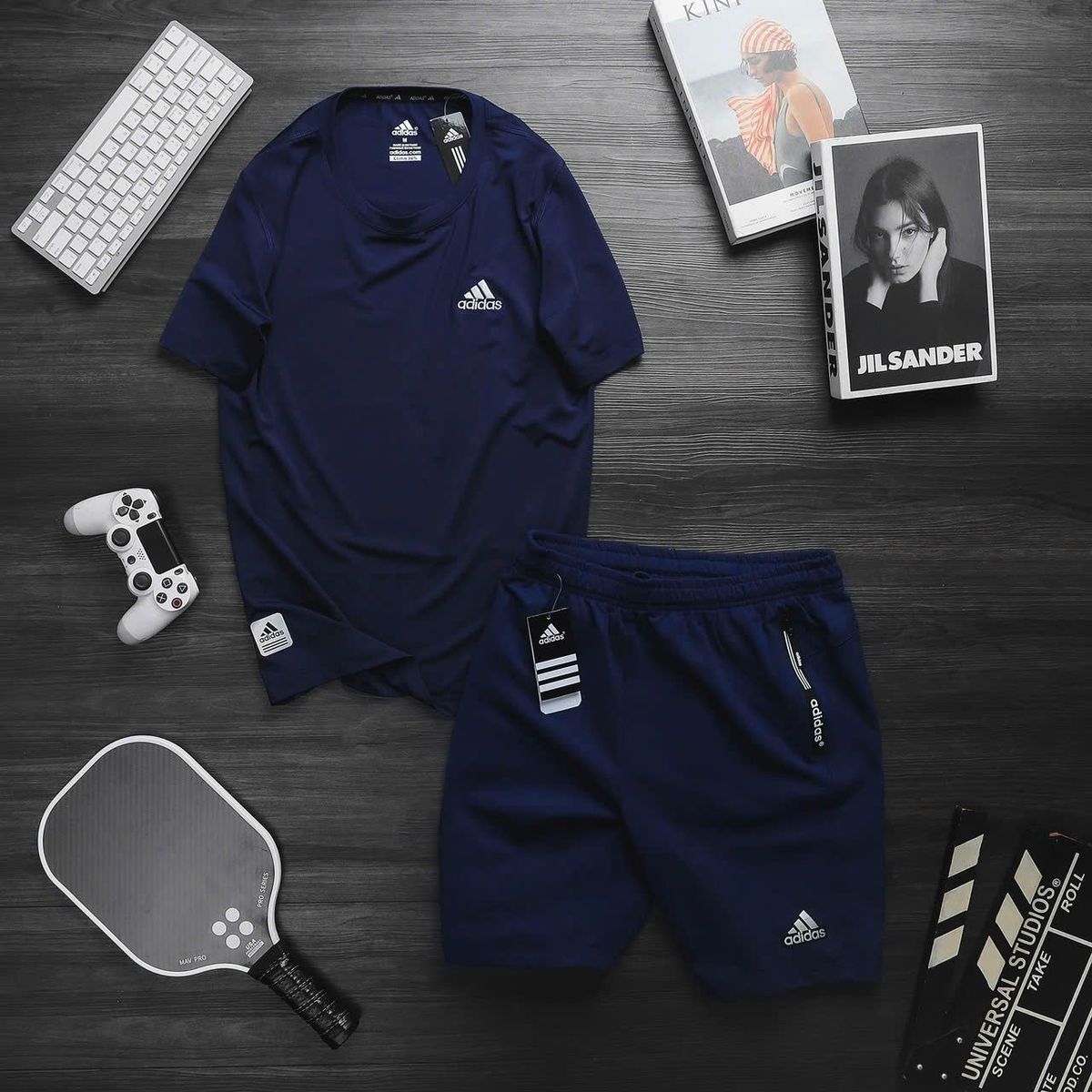 Tổng bộ thể thao short thun poly 2 da trơn láng, co giãn 4c, 3 túi khoá kéo.