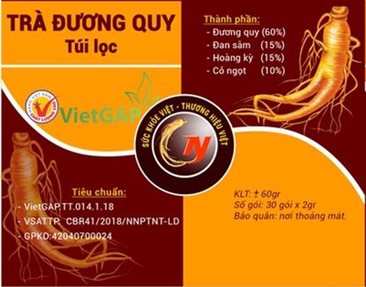 Sản phẩm Trà Đương Quy Túi Lọc được cấp giấy chứng nhận vệ sinh an toàn thực phẩm và sản xuất theo tiêu chuẩn VietGap