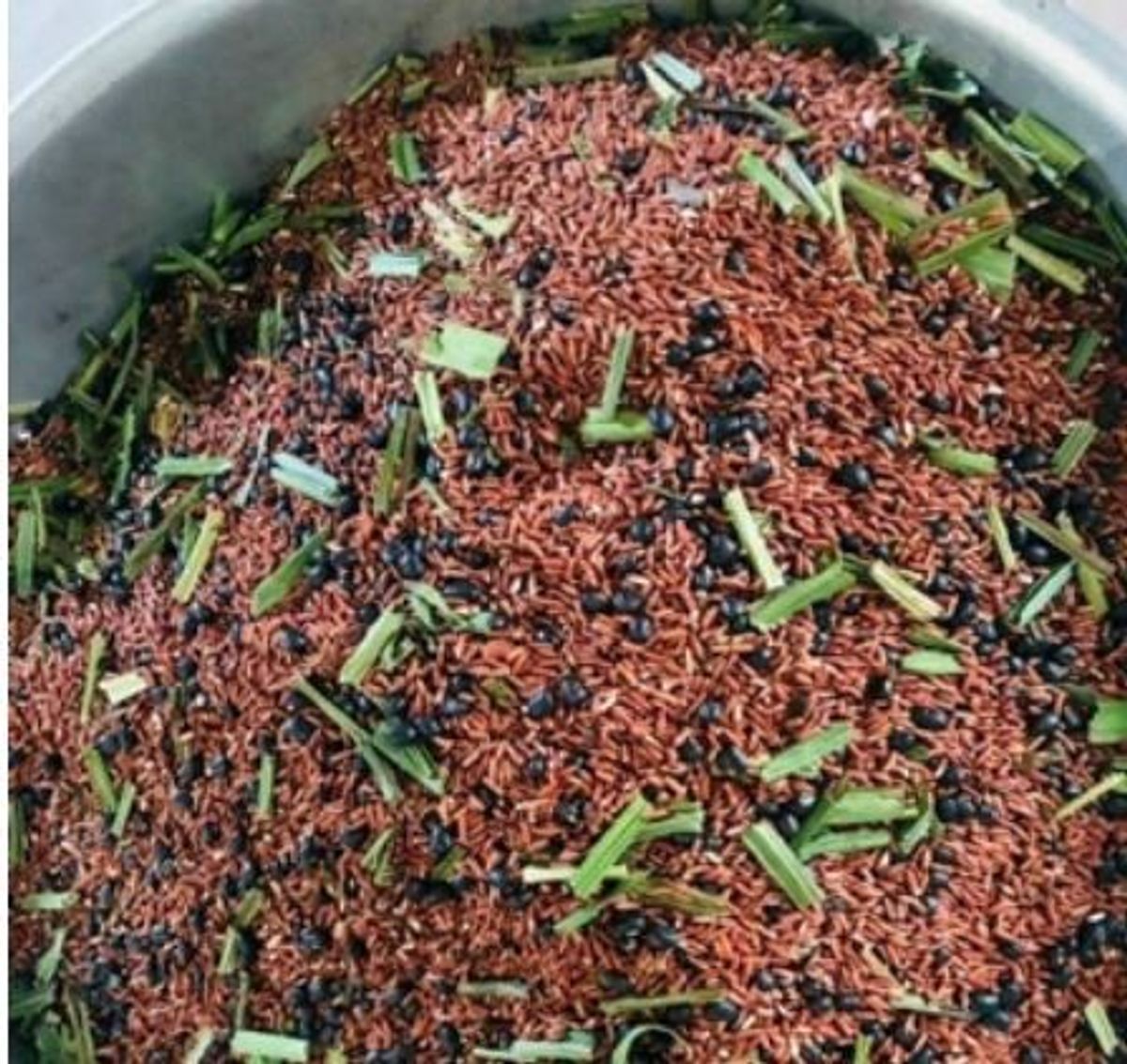 Thành phần: Gạo lứt huyết rồng , đậu đen xanh lòng, lá dứa, đậu đỏ