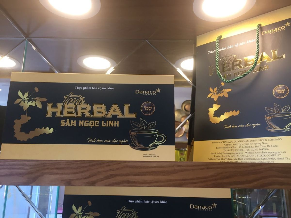 Trà Herbal sâm Ngọc Linh là sản phẩm trà của Công ty CP Danaco Quảng Nam. Sản phẩm được công bố là “Thực phẩm bảo vệ sức khỏe” theo Giấy tiếp nhận đăng ký bản công bố sản phẩm” số 2284/2018/ĐKSP ngày 07/5/2018 của Cục An toàn thực phẩm, Bộ Y tế Việt Nam.