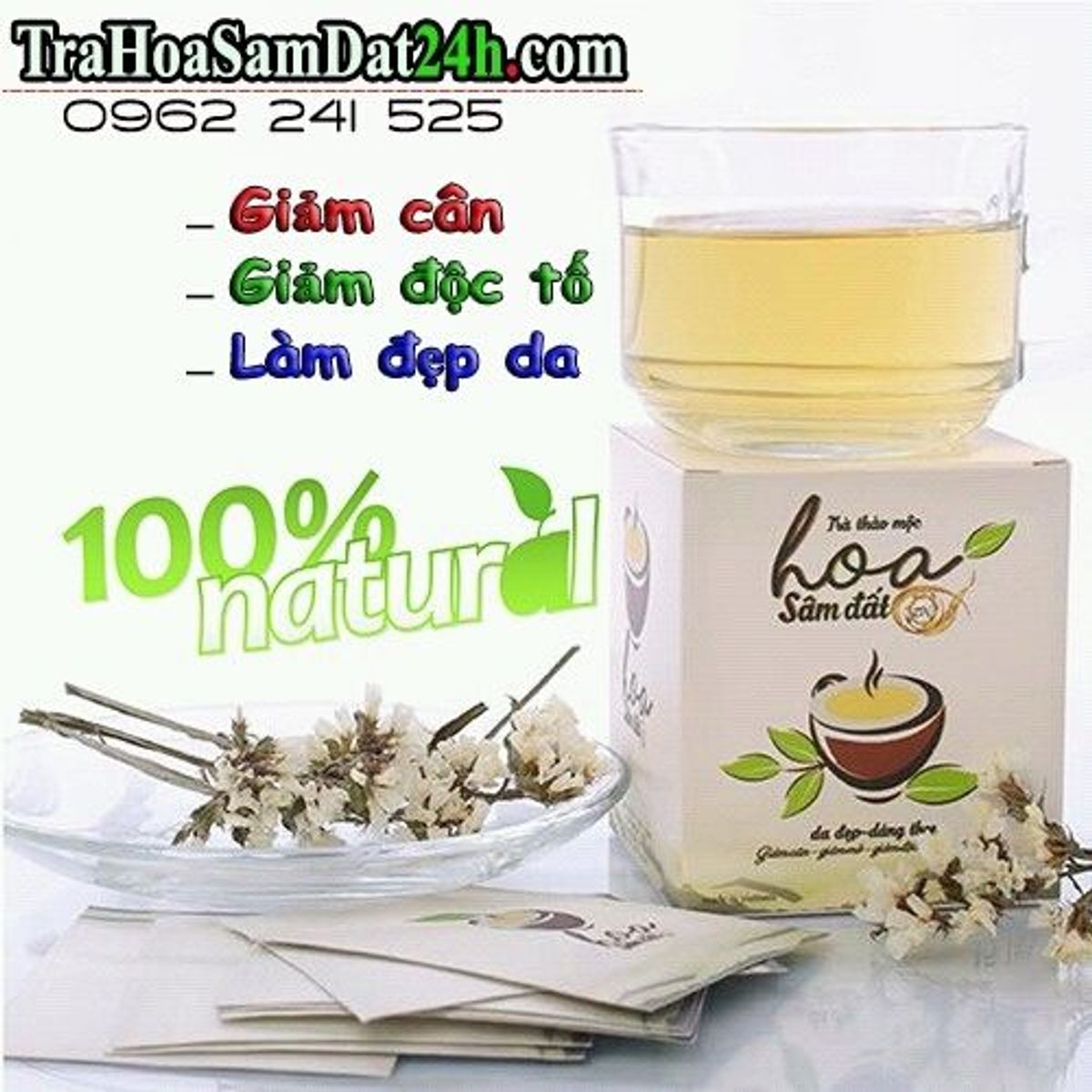 Trà thảo mộc Hoa Sâm Đất giảm cân với 100% thành phần tự nhiên có tác dụng: