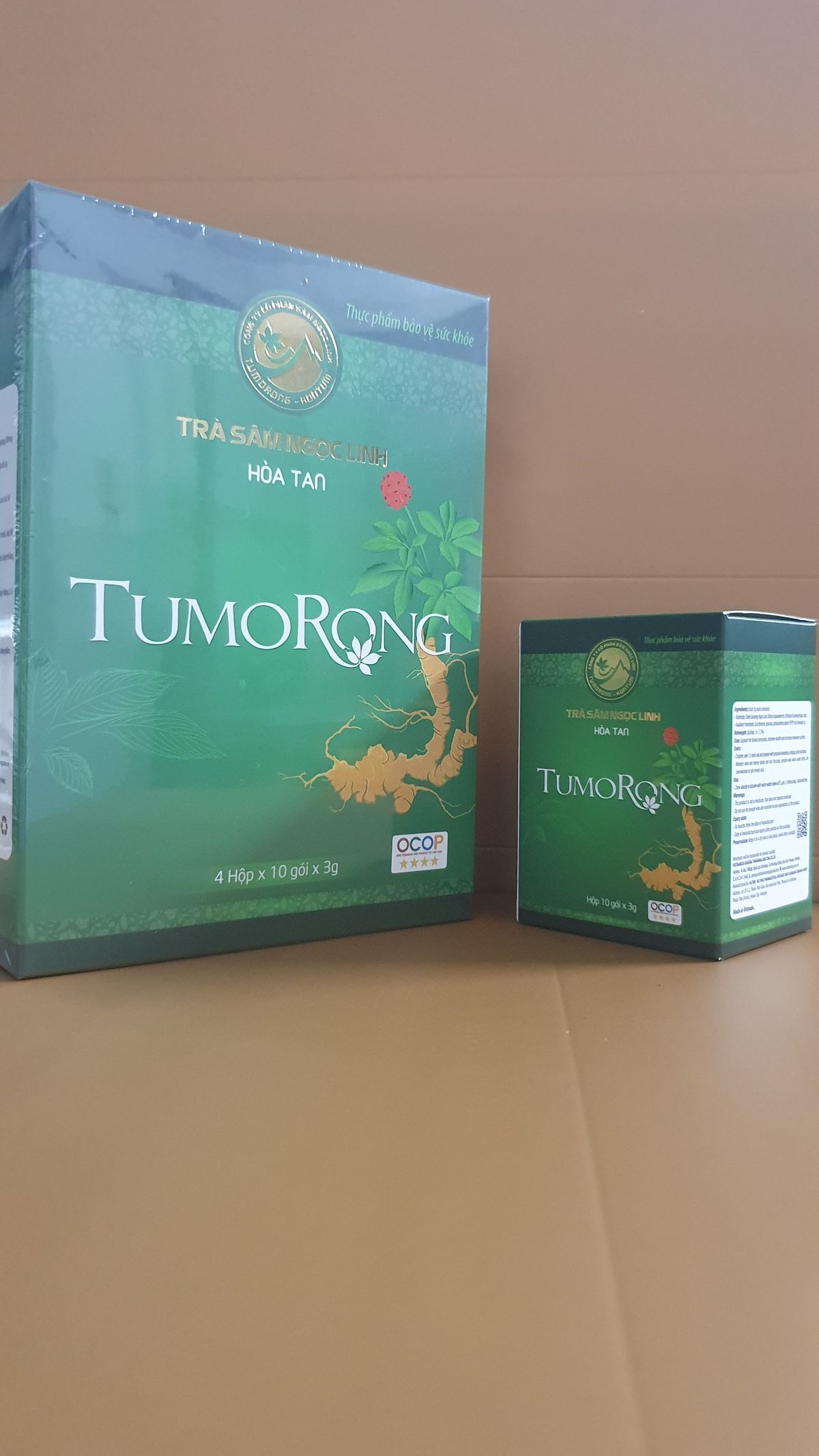 Quy chuẩn đóng gói của 1 hộp trà sâm Ngọc Linh: 40 gói hòa tan với mỗi gói trà có trọng lượng 3gram. Với kích thước nhỏ gọn và nhiều cách sử dụng khác nhau, người sử dụng có thể mang đi và uống tại bất cứ đâu.