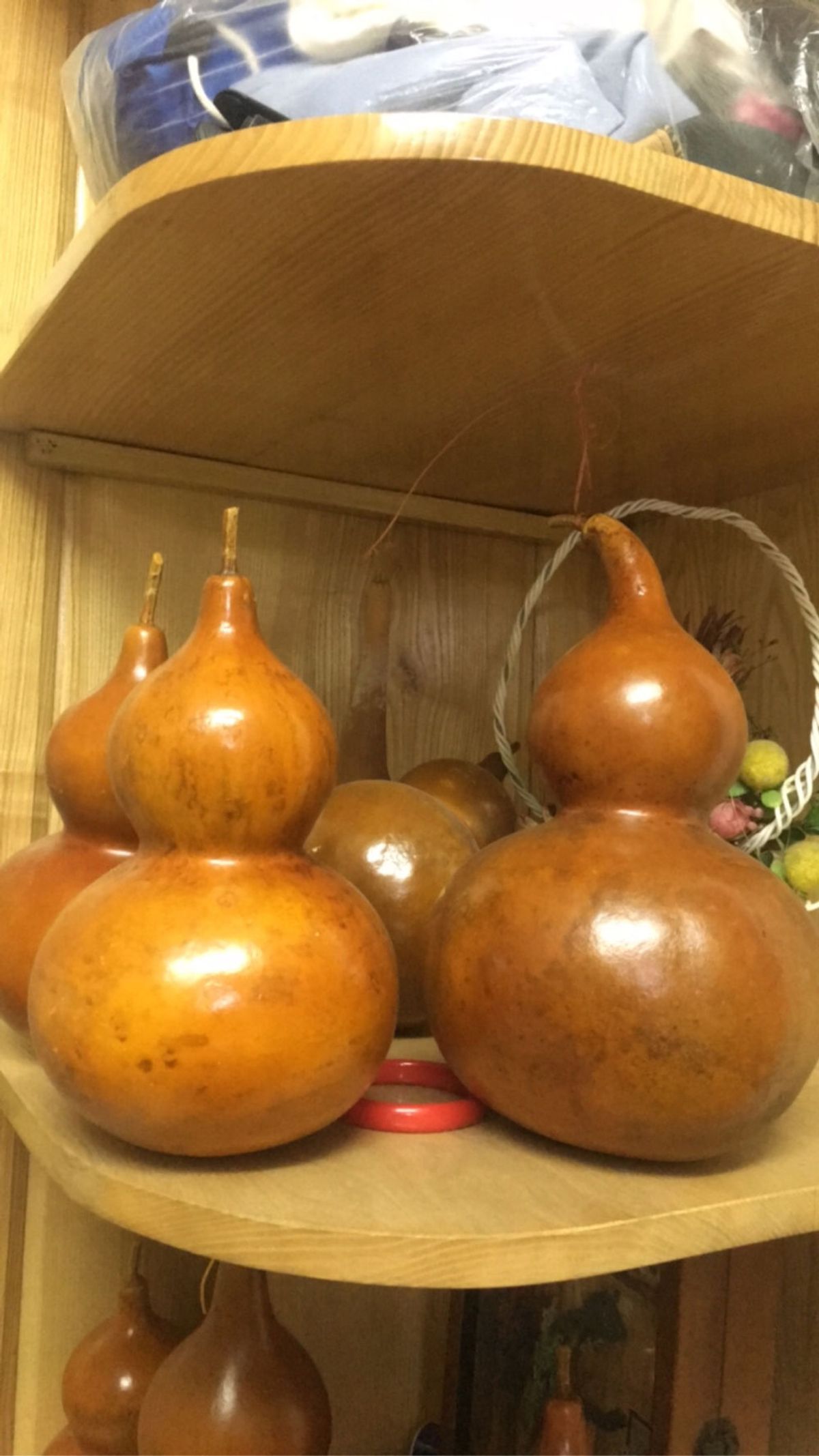 quả bầu hồ lô trồng tự nhiên, nguyên trái, nguyên cuống, đã được phủ sơn bóng chống mốc. quả tự nhiên nên k có quả nào giống quả nào, phát hàng sẽ chọn các quả có dáng đều cân đối.
