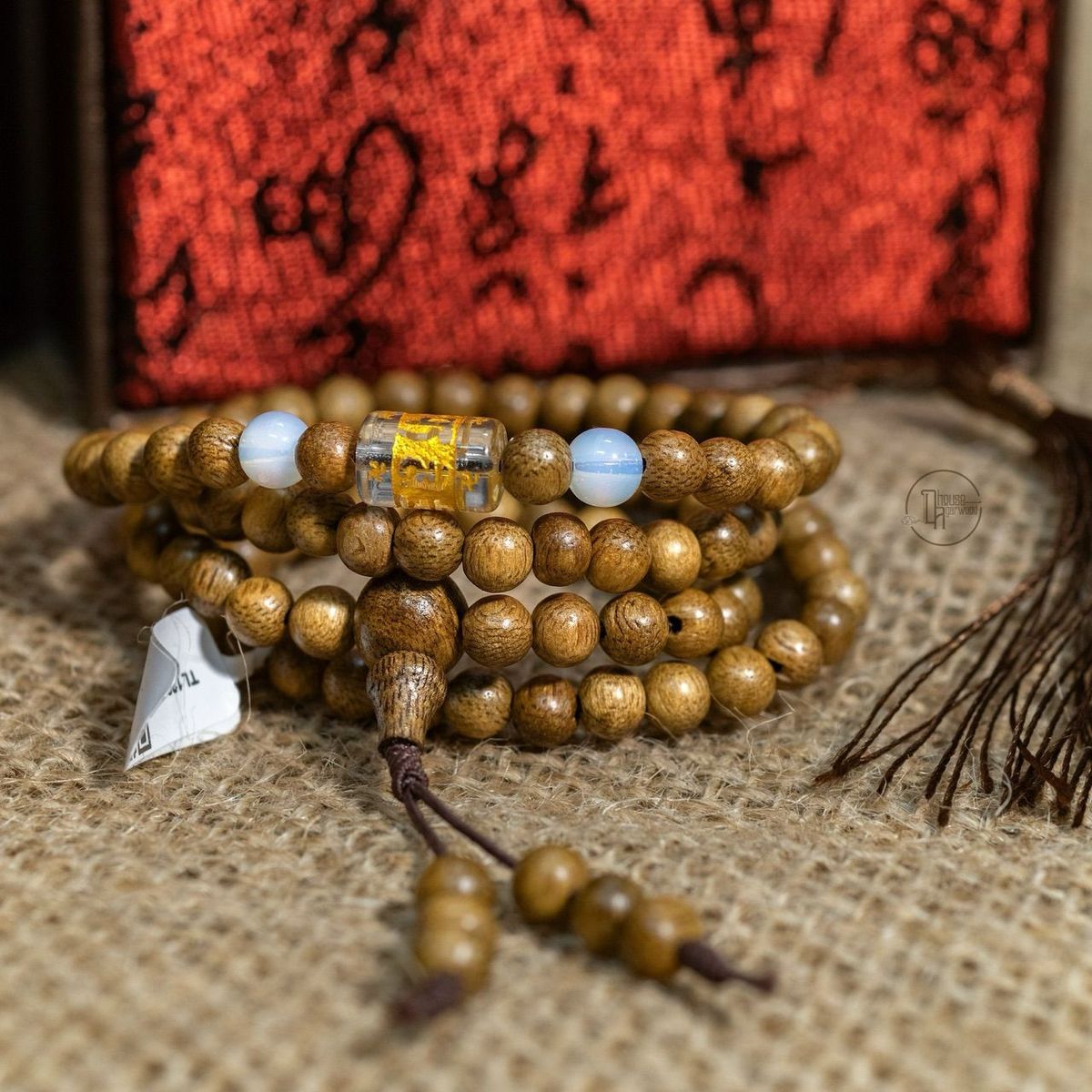 Trầm Hương Thiên Nhiên 108 hạt mix charm lá bùa Tây Tạng