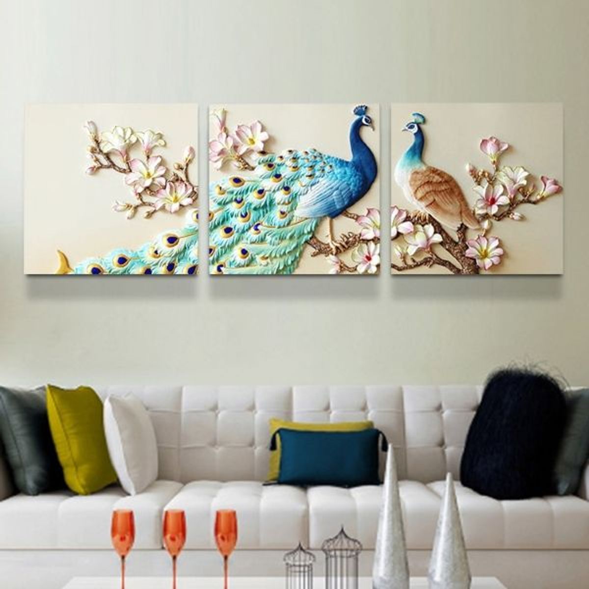 Tranh phù điêu chim công hoa mẫu đơn có họa tiết nổi 3D, sản phẩm làm từ nhựa composite.