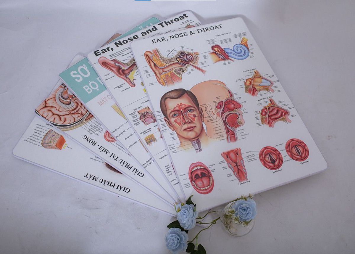 Thông số kỹ thuật: - Kích thước: 40x60cm (sai số 0.5cm), 50.75cm, 60.90cm - Ngôn ngữ chú giải: Tiếng Việt + Loại ép gỗ phủ mica: - Vật liệu in: Giấy in ảnh - Mặt sau ép gỗ - Mặt trước phủ mica - Viền được dán nẹp nhựa PVC trắng - Trọng lượng: Khoảng 2kg Đặc điểm nổi bật: - Tranh được in laser công nghệ in cho hình ảnh sắc nét chống nước và độ bền cao. - Tranh ép gỗ phủ mica bề mặt có thể xóa được khi viết bằng bút dạ dầu. Phù hợp khi đánh dấu vị trí cho người xem. Mục đích sử dụng: - Hỗ trợ cho các Bác sĩ giải thích cho Bệnh nhân về vị trí tổn thương hay một số bệnh - Một số tranh sẽ cung cấp các kiến thức Y khoa hữu ích về dinh dưỡng, sức khỏe, phòng bệnh cho người đọc. - Phần chú giải được tham khảo từ các tài liệu uy tín, đảm bảo sẽ cung cấp kiến thức chính xác về giải phẫu - Sản phẩm với mức độ hoàn thiện về tính thẩm mỹ cao có thể sử dụng tốt cho mục đích trang trí. Phương pháp treo tranh - Tranh ép gỗ phủ mica sử dụng Vít bắt tường và Tắc kê nhựa để cố định tranh
