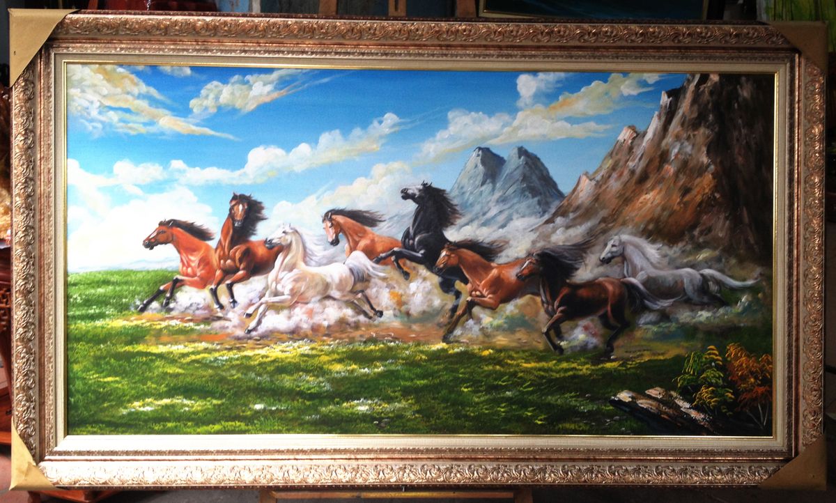 tranh sơn dầu bát mã truy phong Kích thước: 80x120cm có thể thay đổi kích thước theo yêu cầu quý khách hàng