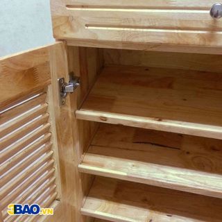 Tủ giày cánh thanh nan được làm từ gỗ cao su, được phủ lớp PU không cong vênh, chống mối mọt và kháng nước.